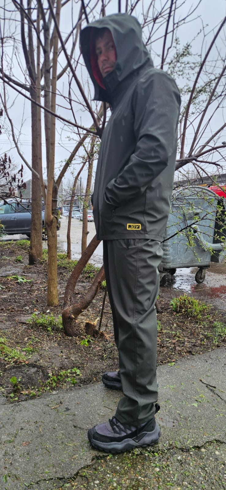 Un costum rezistent la apa si vant care se recomanda a fi purtat in sesiunile de pescuit ploioase. Avand rezistenta foarte buna impotriva apei si cusaturi sudate, acest costum va garanteaza calitatea unei partide de pescuit chiar si pe vreme cu ploaie si vant. Gandit si testat de catre pescari, vine cu forma anatomica, foarte usor, elastic si foarte practic fie ca pescuiti de pe mal sau din barca.