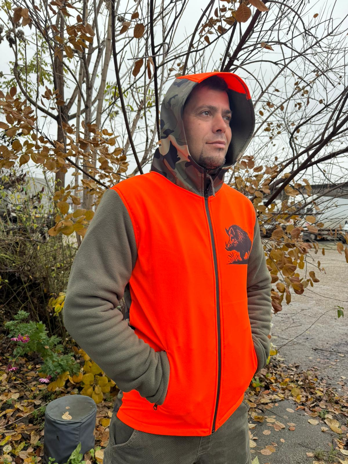 Hanorac din softshell cu maneci din fleece, foarte usor, respirabil, usor elastic, foarte apreciat atat de catre vanatori, cat si de gonaci care practica vanatoarea la mistret.